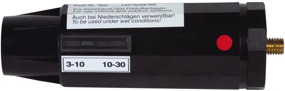 El conmutador de tensiones nominales puede ponerse en dos posiciones de márgenes de tensiones. Por razones de seguridad la puesta en servicio debe efectuarse sólo en la posición más sensible (3 ... 10 kV o 6 ... 20 kV). En cada posición el conmutador se enclava y así está protegido contra movimientos erróneos. La posición puede cambiarse a través de un conmutador de láminas magnéticas resistente al desgaste.