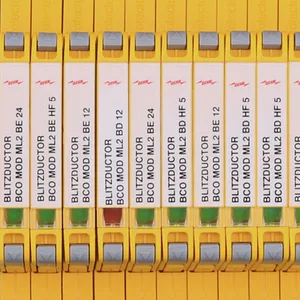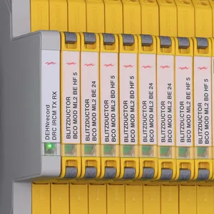 Descargador de sobretensiones modular, que ahorra espacio con un ancho de solo 6 mm y técnica de conexión Push-in con indicación del estado operativo para la protección de 2 hilos de interfaces de señal multifilares libres de potencial de tierra con una tensión nominal de 230 V. Con interrupción de la señal para fines de mantenimiento. Cumple, entre otros, los requerimientos a sistemas de señalización en la industria ferroviaria (conforme a DB RIL 819.0808).
