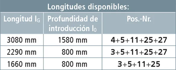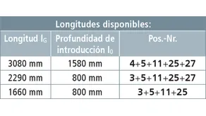 Longitud total (lG max / IG min ) 11000 / 2150 mm