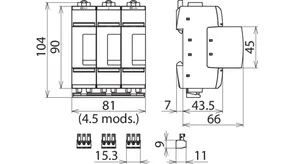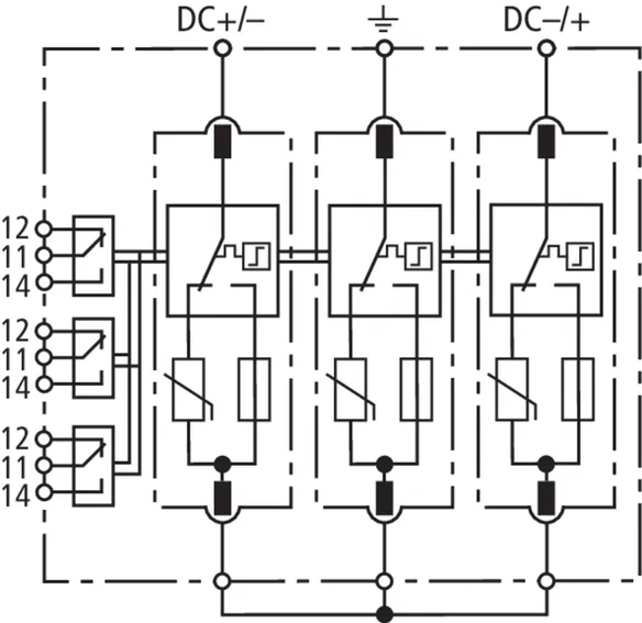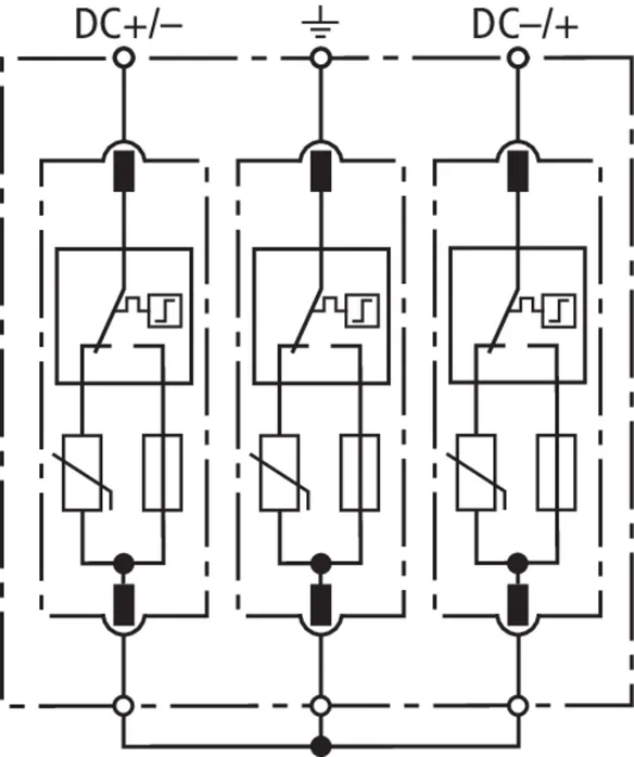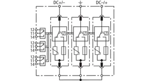 | Corriente nominal de descarga (8/20 µs) [(DC+/DC-) --> PE] (In ) | 12.5 kA |