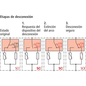 - Dispositivo combinado de separación y de cortocircuito con separación eléctrica segura integrada en el módulo de protección (tecnología patentada SCI)