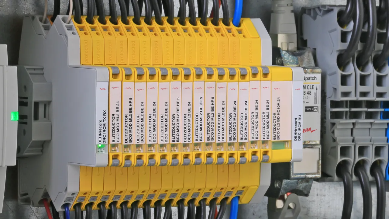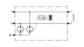 Descargador compacto de corrientes de rayo que ahorra espacio con un ancho de solo 6 mm y técnica de conexión Push-in con indicación del estado operativo para la protección de 2 hilos individuales para la equipotencialidad contra el rayo así como la realización de una toma de tierra indirecta de líneas apantalladas.