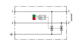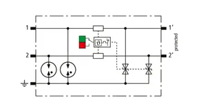Descargador de sobretensiones compacto que ahorra espacio con un ancho de solo 6 mm y técnica de conexión Push-In con indicación del estado operativo. Protección fina contra sobretensiones en una sola etapa con potentes diodos, para la protección de 2 hilos individuales con potencial de referencia común, así como interfaces asimétricas.