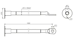 Los puentes de puesta a tierra están destinados a la puesta a tierra, al encaminamiento de la corriente de retorno y a la conexión equipotencial en el ámbito de las líneas ferroviarias. La variante para la puesta a tierra de tubos de gran diámetro se ha concebido para su uso con cimientos de pilotes y tubos de gran diámetro. El producto consta de un cable de cobre con casquillo prensado y placa de conexión INOX con orificios integrados para la fijación del encofrado en un extremo, y un terminal de cable en el extremo opuesto. El terminal de cable se utiliza para crear una conexión resistente a las corrientes de cortocircuito a la cimentación de pilotes o tubos de gran diámetro. La flexibilidad del cable facilita al usuario la instalación en la armadura. Este puente de puesta a tierra también cuenta con la homologación técnica de DB Netz AG y, por tanto, puede utilizarse con seguridad en los diseños destinados a este ámbito.