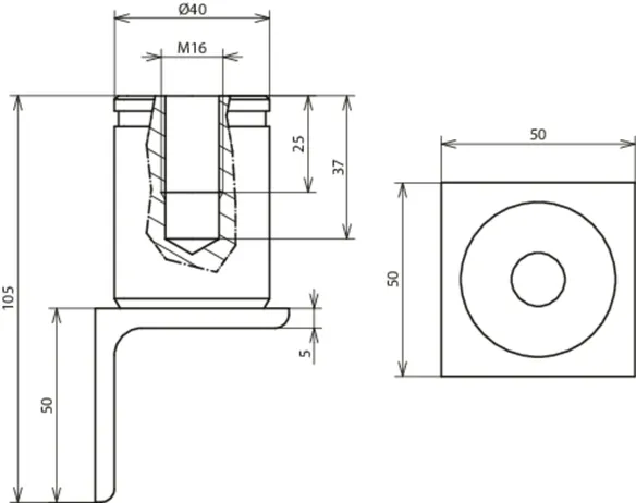 | Dimensiones del angular (la. x an. x prof.) | 50 x 50 x 5 mm |