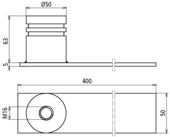 | Dimensiones de la pletina de acero | 400 x 50 x 5 mm |