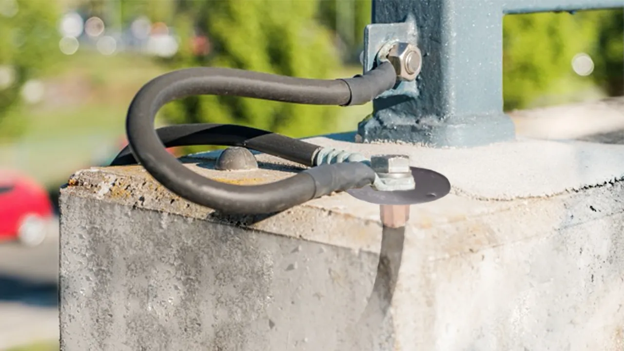 Los puentes de puesta a tierra están destinados a la puesta a tierra, al encaminamiento de la corriente de retorno y a la conexión equipotencial en el ámbito de las líneas ferroviarias. Esta variante se utiliza como paso de puesta de tierra para los componentes y se instala a ambos lados a ras de la superficie. La flexibilidad del cable facilita al usuario la instalación en la armadura. Las variantes especiales FLEX son especialmente idóneas para situaciones de montaje en los que se dispone de poco espacio: en este caso se utilizan cables de cobre extraflexibles y de hilo fino. Estos puentes de puesta a tierra también cuentan con la homologación técnica de DB Netz AG y, por tanto, pueden utilizarse con seguridad en los diseños destinados a este ámbito.