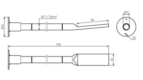 | Taladro de terminal de cable | 13 mm para M12 y 17 mm para M16 |