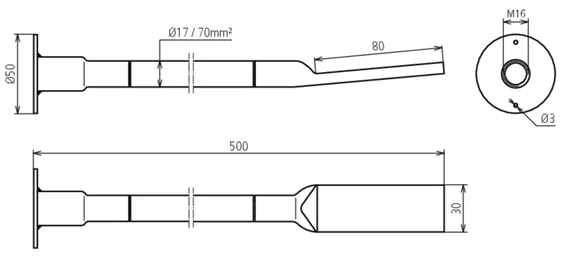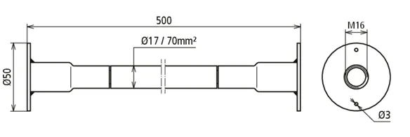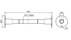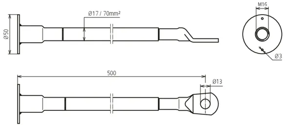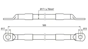 Los puentes de puesta a tierra están destinados a la puesta a tierra, al encaminamiento de la corriente de retorno y a la conexión equipotencial en el ámbito de las líneas ferroviarias. La variante para la puesta a tierra de tubos de gran diámetro se ha concebido para su uso con cimientos de pilotes y tubos de gran diámetro. El producto consta de un cable de cobre con casquillo prensado y placa de conexión INOX con orificios integrados para la fijación del encofrado en un extremo, y un terminal de cable en el extremo opuesto. El terminal de cable se utiliza para crear una conexión resistente a las corrientes de cortocircuito a la cimentación de pilotes o tubos de gran diámetro. La flexibilidad del cable facilita al usuario la instalación en la armadura. Este puente de puesta a tierra también cuenta con la homologación técnica de DB Netz AG y, por tanto, puede utilizarse con seguridad en los diseños destinados a este ámbito.
