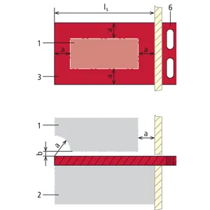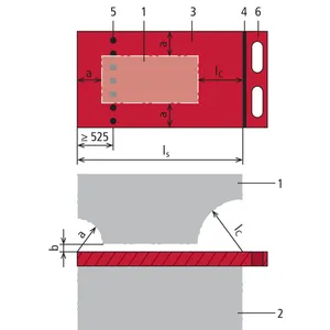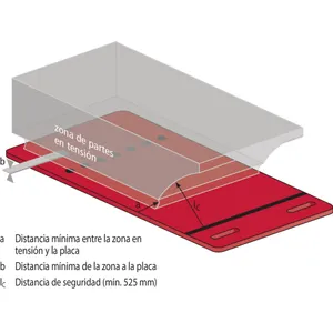 La marca auxiliar es una línea de puntos con una distancia mínima de 525 mm en el lado trasero de la placa. Esa marca no debe sobrepasarse cuando se coloca la placa protectora aislante.