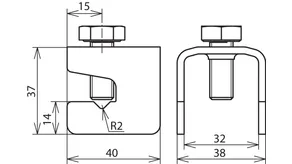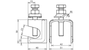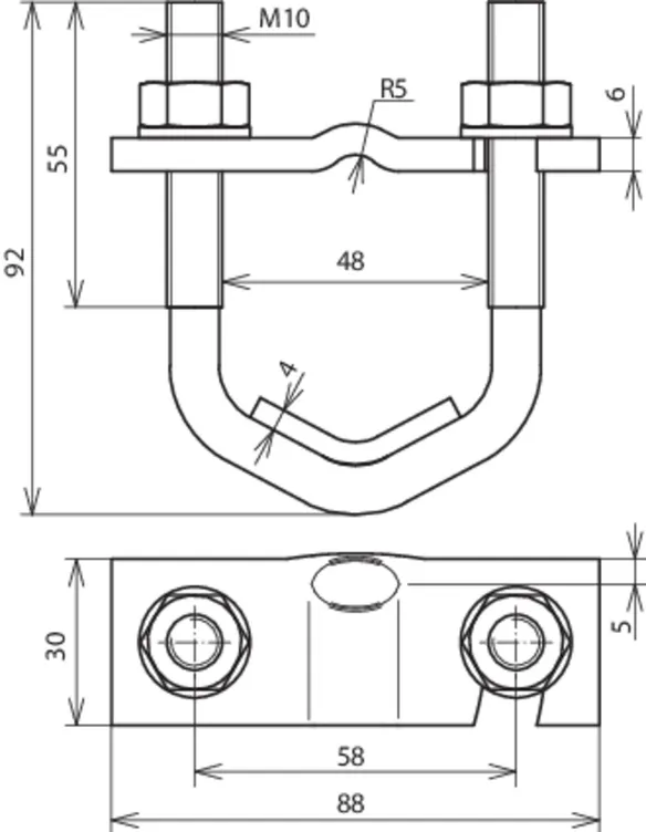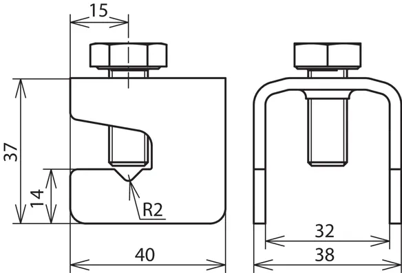 Para conexiones en cruz de conductores redondos (6-10 mm) o para la fijación con conexión, al mismo tiempo, de puntos fijos de toma de tierra.
