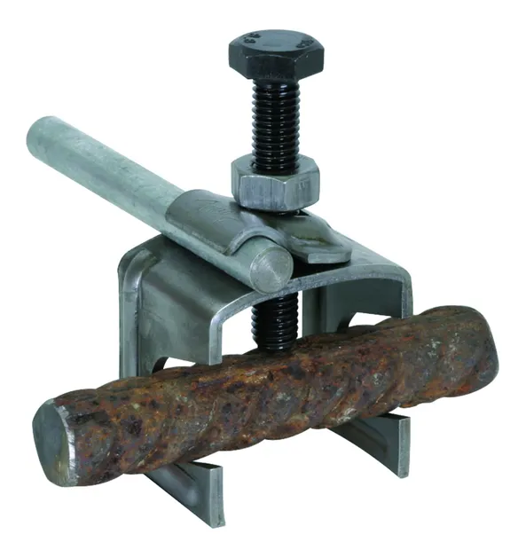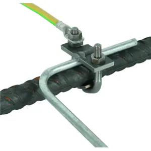Para la conexión flexible de conductores redondos o para puntos fijos de toma de tierra con sujeción, al mismo tiempo, en el encofrado.