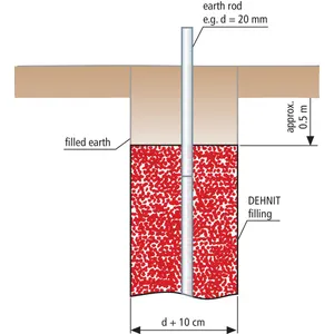La arcilla especial para mejora del valor de resistencia DEHNIT se utiliza para rodear con ella la toma de tierra.