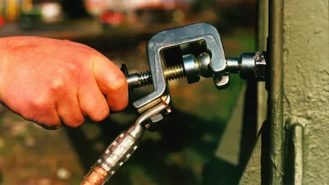 Borna de tierra de fresado empleado en un mástil de acero barnizado.