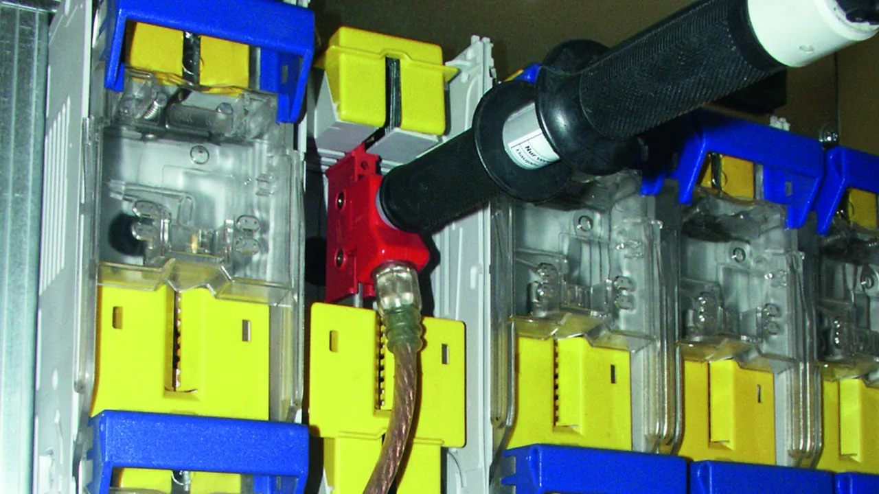- Manejo seguro con maneta de tierra VI aislada (con función doble), idóneo tanto para colocar y remover cartuchos de tierra con conexión en T como para desatornillar el equipo de puesta a tierra y cortocircuito (equipo EaS)