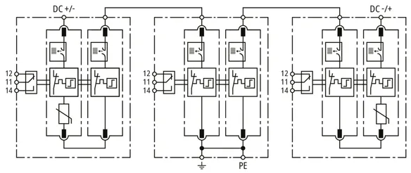 | Nivel de protección [(DC+/DC-) --> PE] (UP ) | < 2,5 kV |