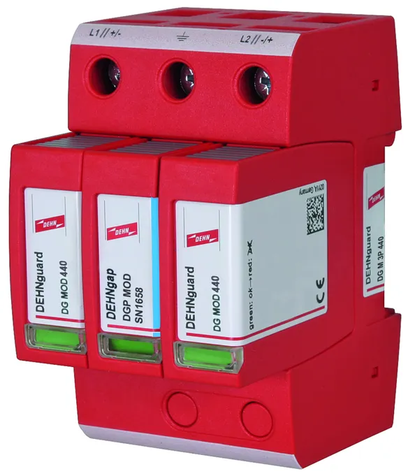 | Máx. protección contra sobrecorrientes aguas arriba del descargador | 125 A gG (AC) / 80 A gPV (DC) |