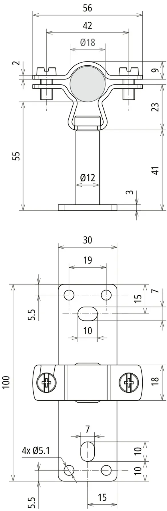 Para la fijación a tubos (por ejemplo, con abrazadera de banda (ref. 106 323)) en las zonas Ex 1 y 21.