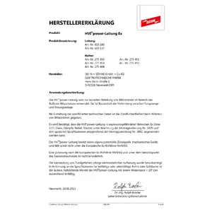El producto cable HVI power es apropiado para su utilización en zonas con peligro de explosión de la zona Ex 1 (gases, vapores, mezclas) y de la zona Ex 21 (polvos).