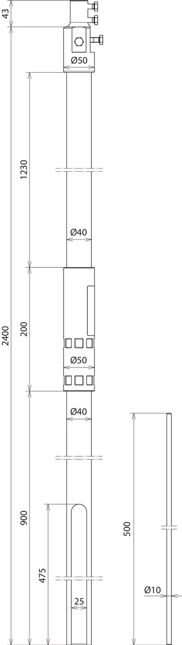 | Longitud del tubo autosoportado | 2400 mm |