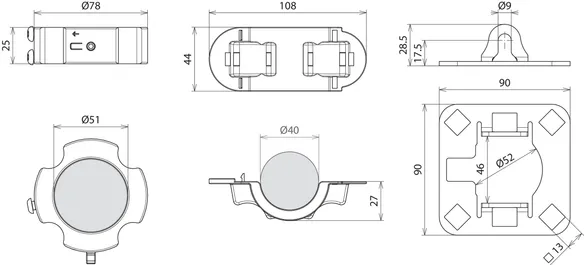 | Soporte de placa de conexión | Orificio cuadrado 13 mm |