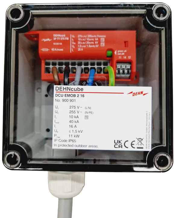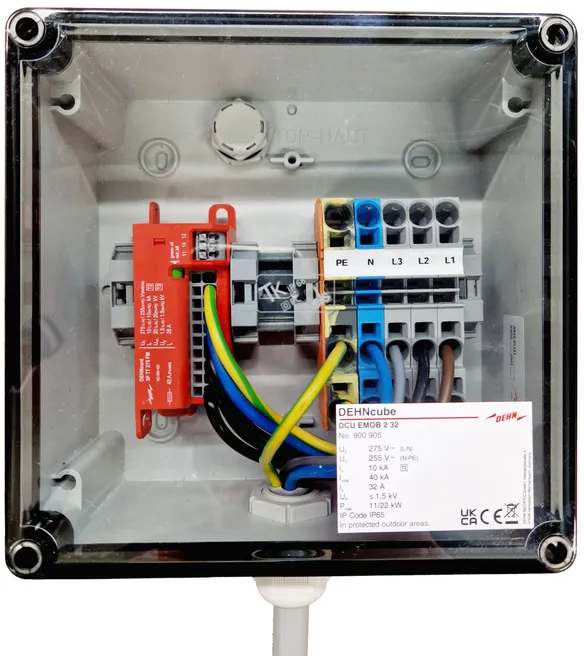 | Corriente de choque de rayo (10/350) [L-N]/[N-PE] (Iimp ) | 12,5 / 50 kA |