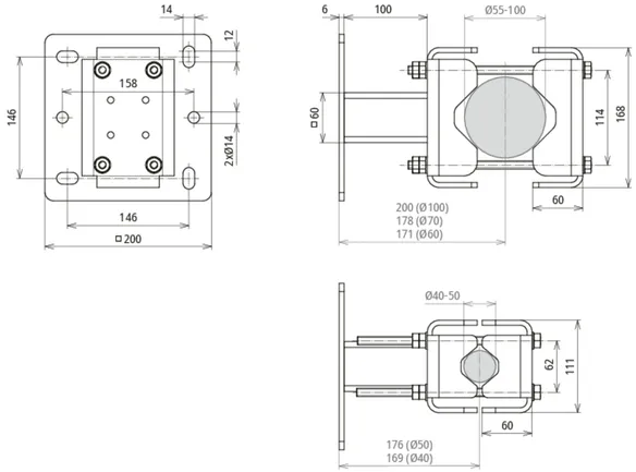| Margen de apriete (Ø de mástil) | 40-50 mm (vertical) / 55-100 mm (horizontal) |